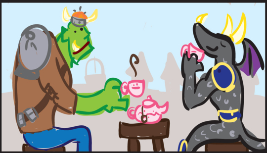 Lovonian and the Orc Chieftan take a much needed break from battle in Little Black Stormcloud (Breath of the Titans, #1) by Riley Westbrook.